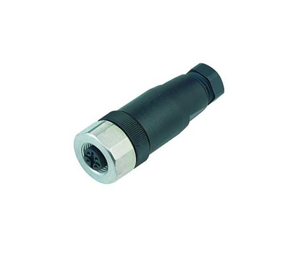 Conector hembra para cable, bloqueo roscado de acero inoxidable, conexión mediante terminal de tornillo, contactos chapados en oro, homologación UL.