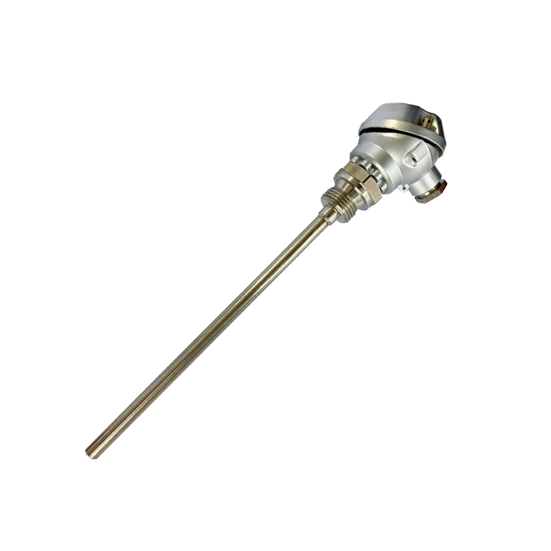 Sonda de temperatura RTD atornillable con cabezal terminal en forma de J, con tubo de protección recto