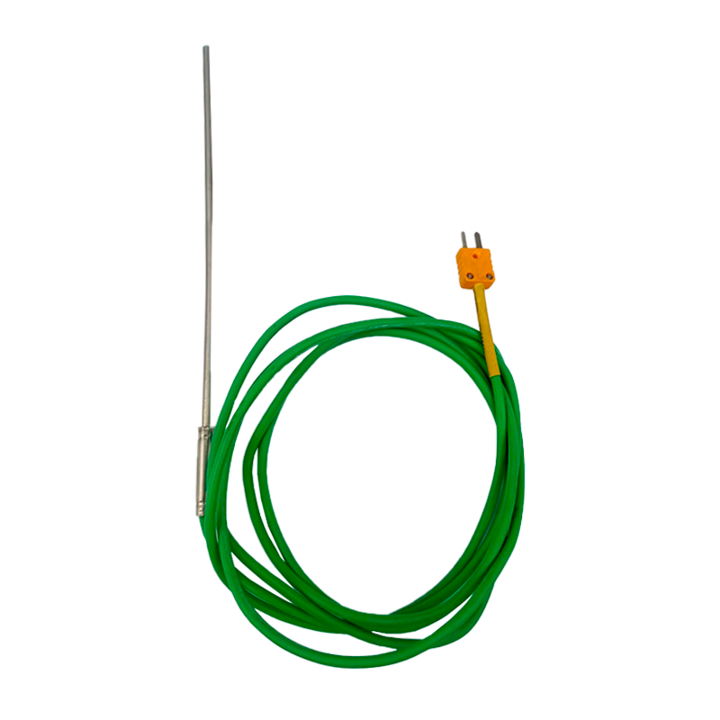 Los termopares con aislamiento mineral están hechos de un cable de cubierta flexible de pared delgada en el que los cables del termopar están incrustados en óxido de magnesio comprimido resistente al fuego. La buena transferencia térmica entre la vaina y el termopar permite tiempos de respuesta cortos y alta precisión de medición.