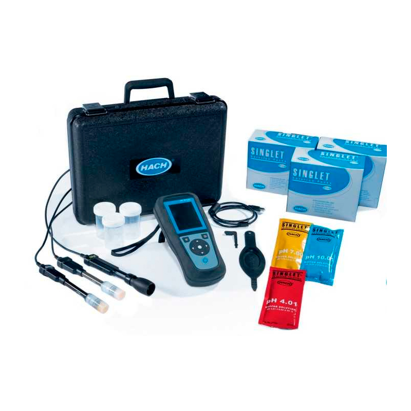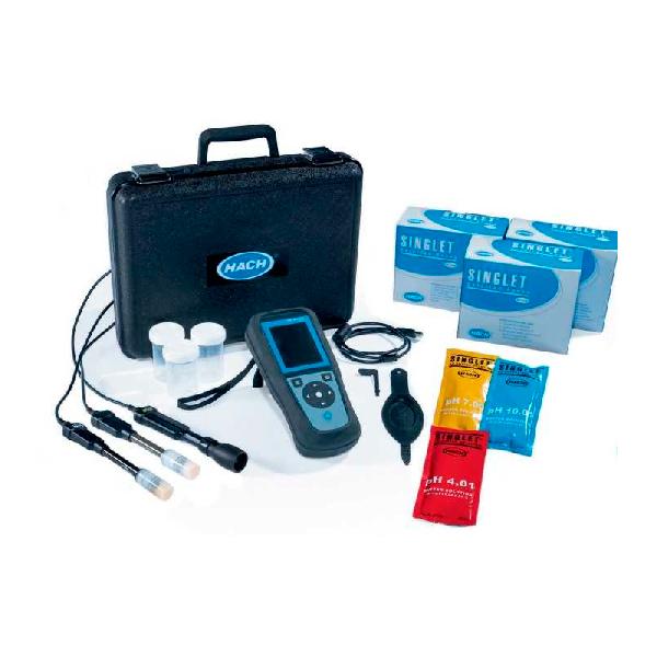 Medidor portátil de pH/ORP/EC/TDS/OD HQ4300, 3 canales, para análisis en plantas de aguas residuales, con electrodos Intellical PHC201 de pH, CDC401 de conductividad y LDO101, cables de 1 m. Accesorios de campo incluidos.