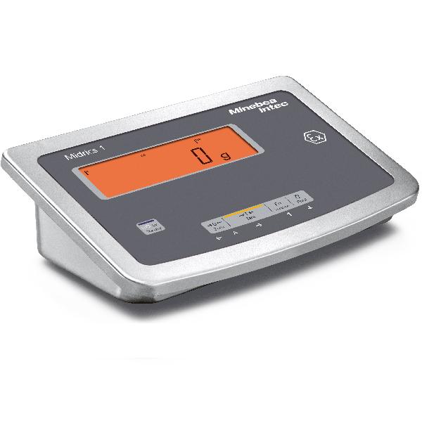 El indicador de peso modelo Midrics de Minebea Intec, puede instalarse en todos los tipos de sistemas con celdas de carga analógicas, independientemente del tipo de plataforma o sobre un pedestal.