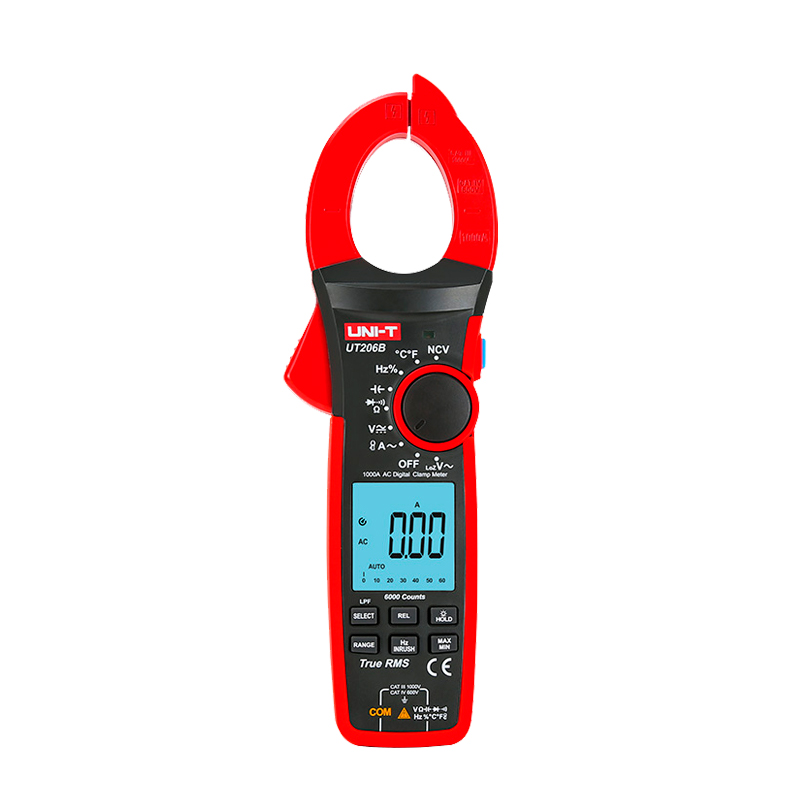 La serie UT200 son pinzas amperimétricas digitales de 6000 unidades con funciones de rango automático, LCD grande, RMS verdadero, memoria de escalabilidad automática y NCV.