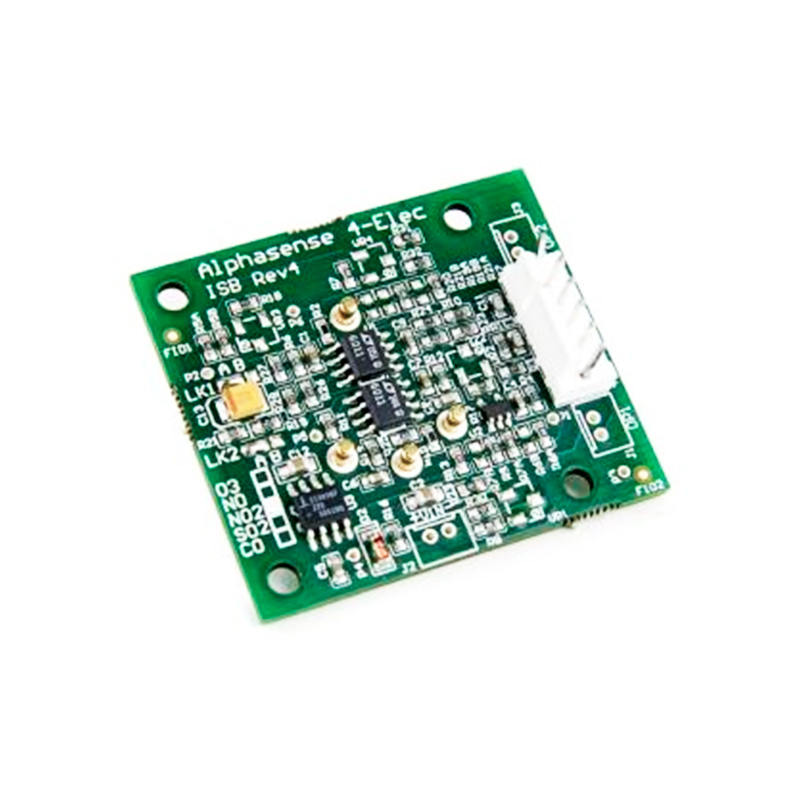 La placa de sensor individual (ISB) está diseñada para usarse con la familia Alphasense B4 de sensores de gas de cuatro electrodos. Este potenciostato proporciona una salida de voltaje de doble canal.